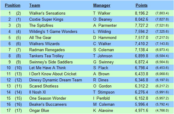 OVERALL LEAGUE TABLE - WEEK 18